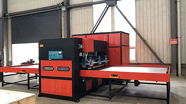 由高周波系統(tǒng)、(含高周波電箱、高周波控制配電箱、滑臺(tái)緩沖控制、高周波龍門式四柱機(jī)架結(jié)構(gòu)) 滑臺(tái)式工作臺(tái)系統(tǒng)、高周波防護(hù)系統(tǒng)、高周波油壓驅(qū)動(dòng)系統(tǒng),獨(dú)立的水冷系統(tǒng)等結(jié)構(gòu)組成。本設(shè)備是一套自動(dòng)高周波焊接裝置,在滑臺(tái)式工作臺(tái)手工放入工件,由手工定位,設(shè)備將工件自動(dòng)送至高周波工作區(qū)域進(jìn)行高周波焊接;完成焊接的產(chǎn)品經(jīng)滑臺(tái)式工作臺(tái)退回后取出。從而完成一個(gè)完整的流程;作業(yè)員按設(shè)備設(shè)定的節(jié)拍持續(xù)置入產(chǎn)品原料,高周波作業(yè)節(jié)拍高效率地自動(dòng)化完成熔接作業(yè)。用戶可自由設(shè)置作業(yè)時(shí)間,一般為10--15秒一個(gè)作業(yè)節(jié)拍。