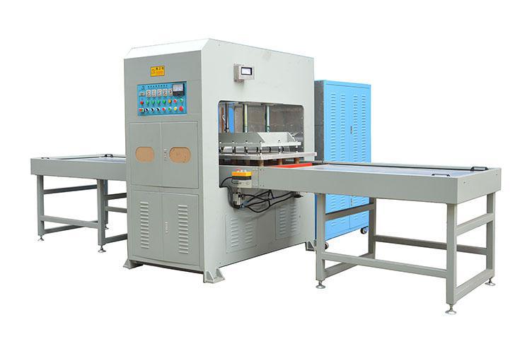 PVC花色地毯熱合機(jī)_PVC拼色門墊焊接機(jī) 2016款高頻地毯拼色熱合機(jī)設(shè)備在無錫金電企業(yè)成功出貨,針對PVC門墊、地毯拼色設(shè)計一款新型高周波塑膠熔接機(jī)設(shè)備,設(shè)備功率35KW,適合各種尺寸的PVC門墊拼色熱合,設(shè)備滑臺臺面2000x2200mm,自動滑臺操作,PLC人機(jī)界面操作等一系列高科技術(shù)運用,我們只做好設(shè)備,高端高頻機(jī)盡在無錫金電廠家。35KW高周波塑膠熔接機(jī)特點:1、高頻頻率符合國際標(biāo)準(zhǔn)2、高頻電磁泄露達(dá)到行業(yè)標(biāo)準(zhǔn)3、自動過流保護(hù)裝置4、自動火花保護(hù)系統(tǒng)5、PLC人機(jī)界面操作6、自動滑臺式操作7、油壓式操作系統(tǒng)新款PVC花色地毯焊接樣品展示: